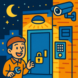 オートロックや防犯カメラ、夜の共用部の明るさなど。
